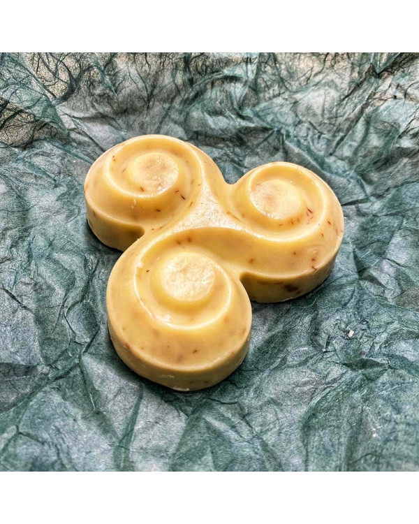 There are little particles of herb in the soap, which gently massage and have a mild pilling effect. The oil ensures that the skin is nourished and not dried out.